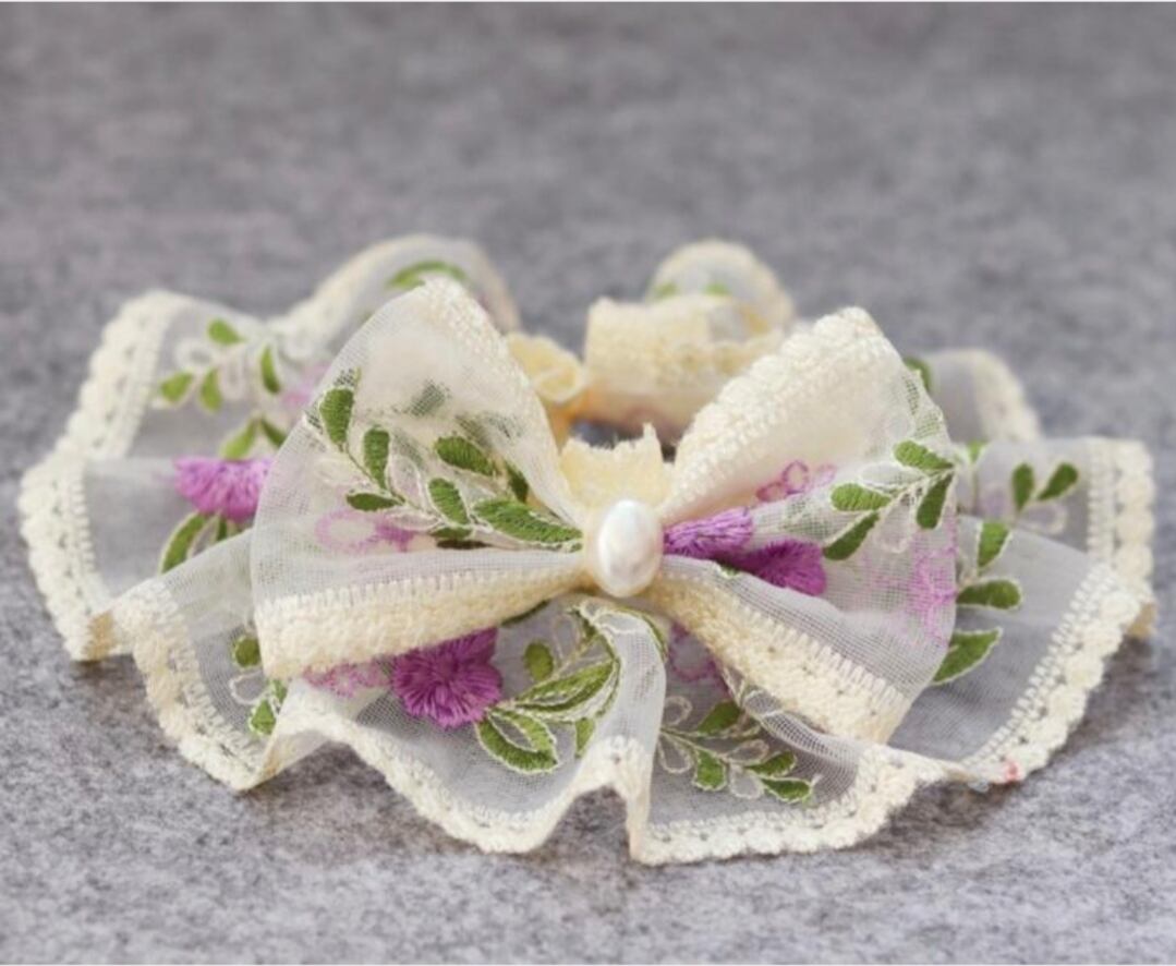 透ける素材にお花の刺繍がデザインされた、優雅で繊細なデザインです。