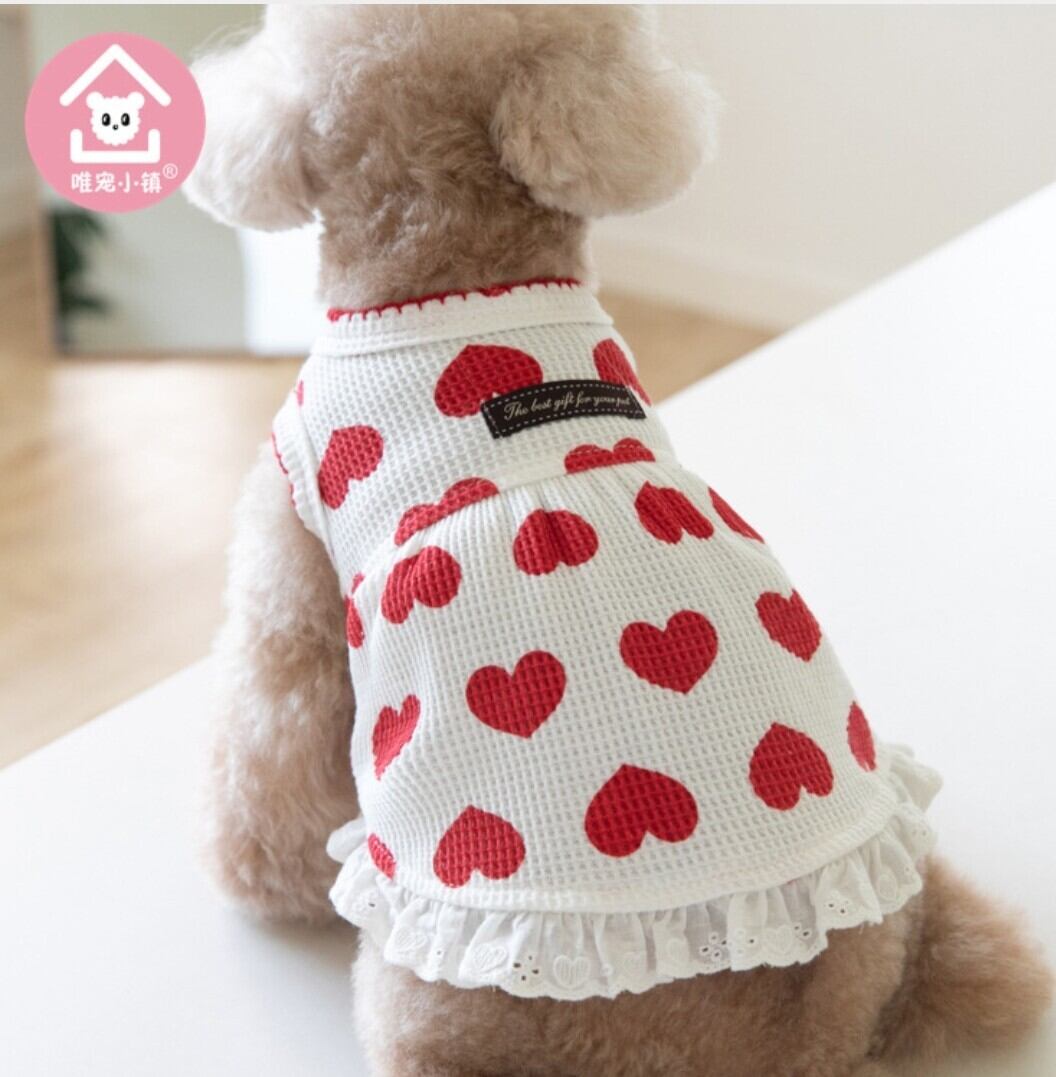 ワッフル生地のふんわりとした触り心地が魅力のハートのワンピース。可愛らしいハート柄がポイントです。
